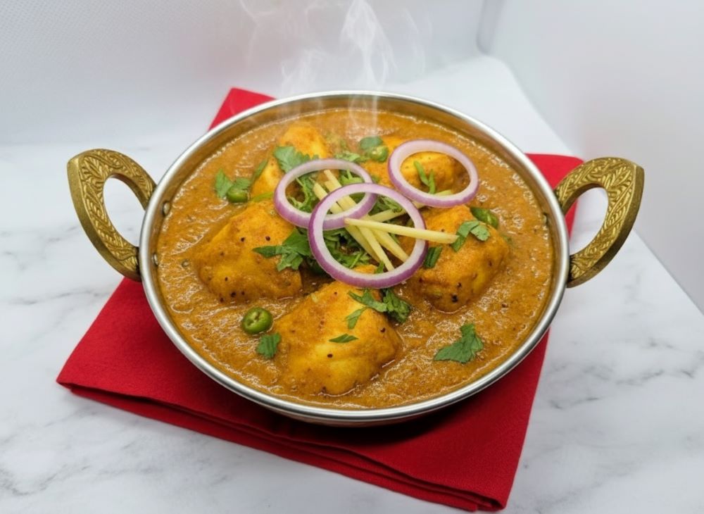 Lachsfilet mit Frische Paprika,Zwiebelen,Ingwer in Tarka Curry